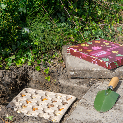 Bij Bulbious geloven we dat groen voor iedereen moet zijn, ook als je geen grote tuin hebt. Daarom ontwikkelden we het Magic Bloom Gift: een speciaal ontworpen planttray die precies past in een stoeptegel van 30 x 30 cm. Ideaal voor kleine tuinen, stadstuinen, balkons of voortuinen.